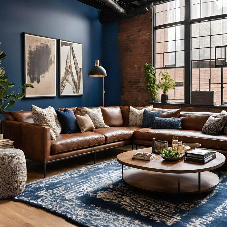 Design Tip: Try a caramel leather chair or ottoman with blue accent pillows or wall art for a balanced feel.