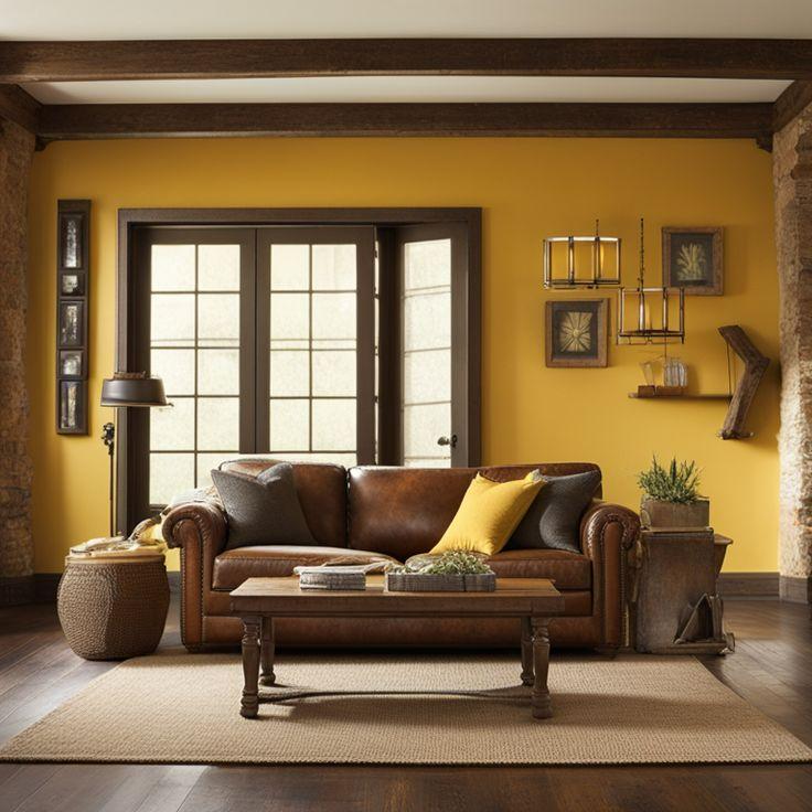 Design Tip: A mustard armchair or artwork works well alongside brown furniture without overwhelming the room.