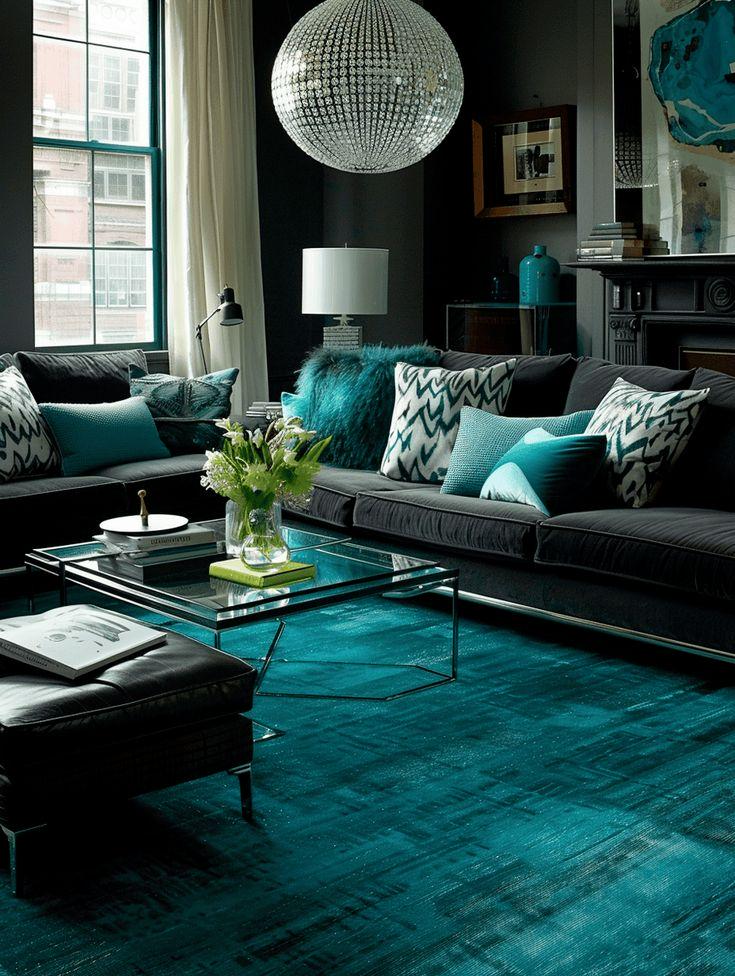 Charcoal provides just enough contrast while letting turquoise stay the focus. The result is sleek, calm, and balanced.