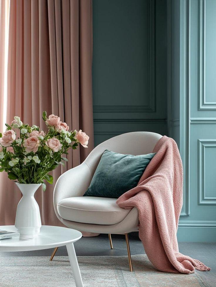 You can use this combination in bedrooms, creative offices, or dressing areas. A turquoise wall with blush bedding or pink-accented furniture is both stylish and cheerful.