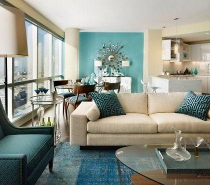 Use this combination in bedrooms, family rooms, or any space where comfort is the goal. A beige sofa against a turquoise wall is a simple but strong look. Cream and beige let turquoise stand out without feeling cold or clinical.